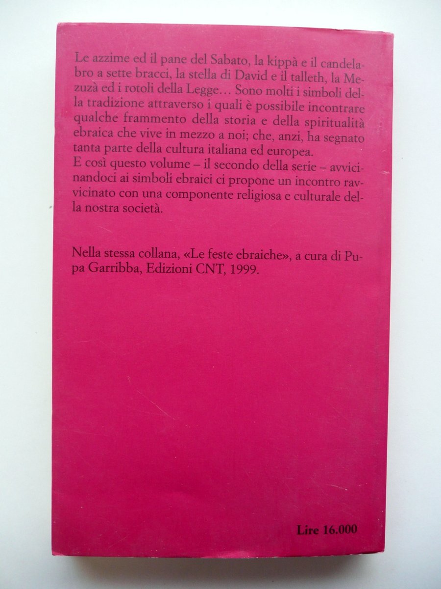 AA. VV., I Simboli Ebraici a cura di Pupa Garribba con una nota di Giovanni Franzoni Edizioni Com Nuovi Tempi, Roma 2000, cm 17x11, pp. 130; brossura ed. con sovraccoperta ed. ill. a colori. Condizioni di conservazione Esemplare in buone condizioni con tracce d'uso alla sovraccoperta ed. Inerni ottimi. SETT96.L8895 N P