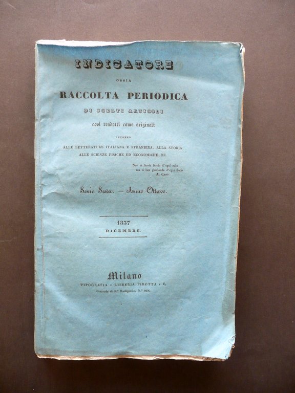 I Templari Ferrario Indicatore Raccolta di Scelti Articoli Pirotta Milano 1837 | Libri antichi e moderni |