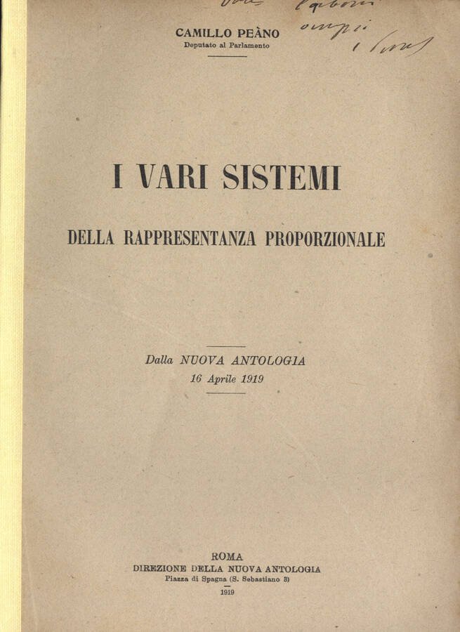I vari sistemi della rappresentanza proporzionale | Libri antichi e moderni | Camillo Peàno