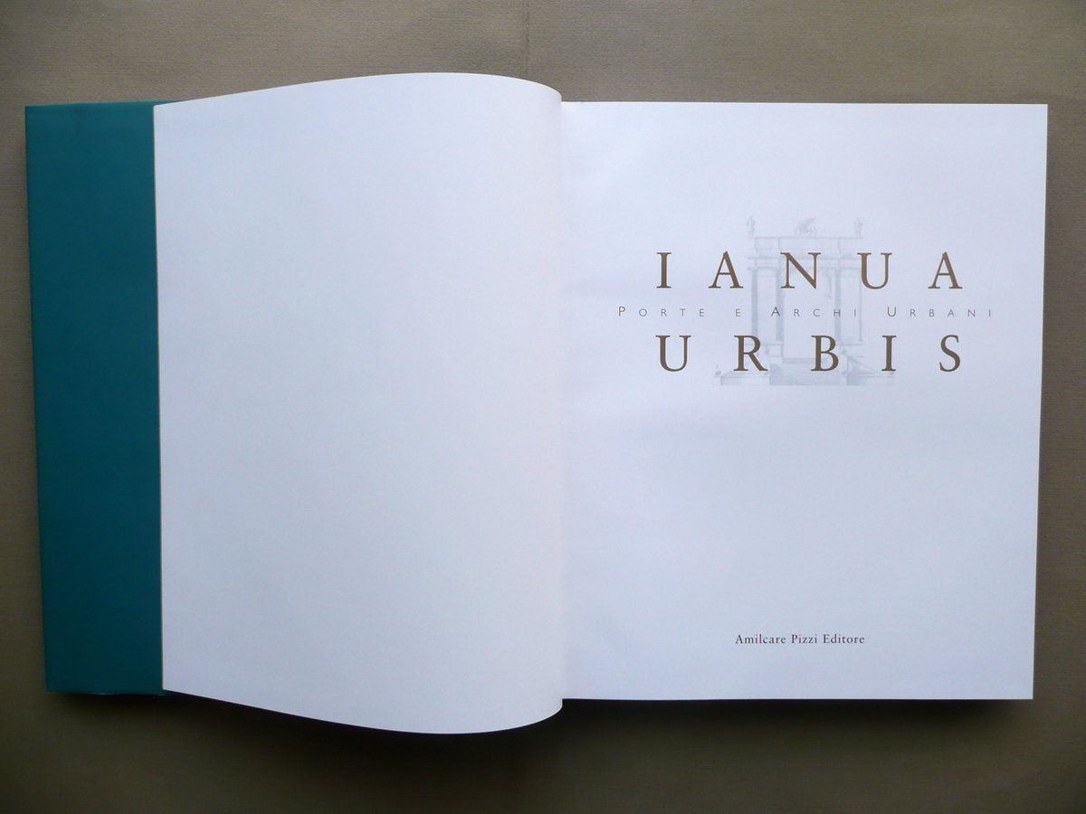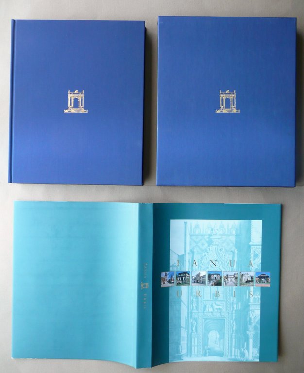 AA. VV., Ianua Urbis Porte e archi urbani Amilcare Pizzi Editore, Milano 1997; cm 33,5x27,5; pp. 312 con numerosissime ill. fotogr. a colori e in b/n nel t. e fuori t.; elegante legatura in tutto cartonato ed. rivestito in seta, con titolo impresso in oro al dorso; piatto ant. con fregio impresso in oro; sovraccoperta ed. ill. a colori. Volume contenuto entro cofanetto ed. in cartonato muto rivestito anch'esso in seta, con fregi dorati impressi ai piatti. Condizioni di conservazione Volume in ottimo stato di conservazione con minime tracce di utilizzo alla sovraccoperta ed. Interni ottimi, freschi. Cofanetto ed. anch'esso molto ben conservato con qualche minimo graffietto e leggerissime tracce di sporco. Interessante pubblicazione sulle porte e archi urbani di varie città italiane. Fotografie di Franco Fontana. SETT129.L12764 N