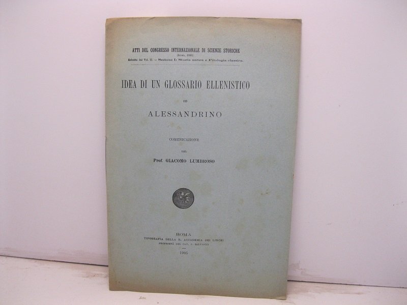 Idea di un glossario ellenestico od alessandrino. Comunicazione | Libri antichi e moderni | Lumbroso Giacomo