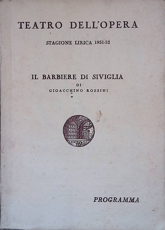Teatro dell'Opera Roma, Stagione Lirica 1951-1952, pagine non numerate, f.to cm 21x15, copertina flessibile, illustrazioni in b/n con una tavola a colori applicata a fine testo. Ottime condizioni