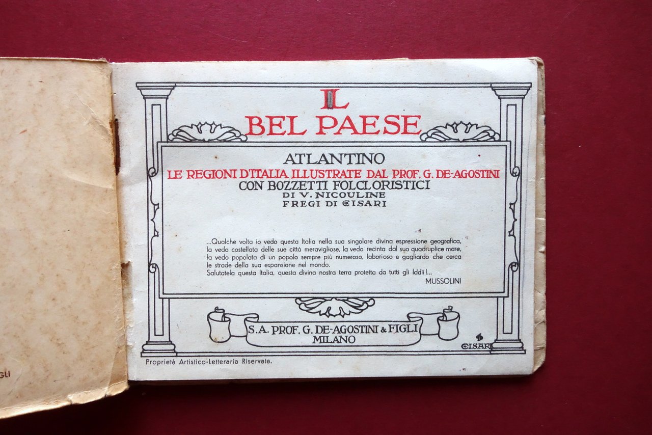 Il Bel Paese Atlantino Le Regioni d'Italia Illustrate G. De Agostini 1934 | Libri antichi e moderni |