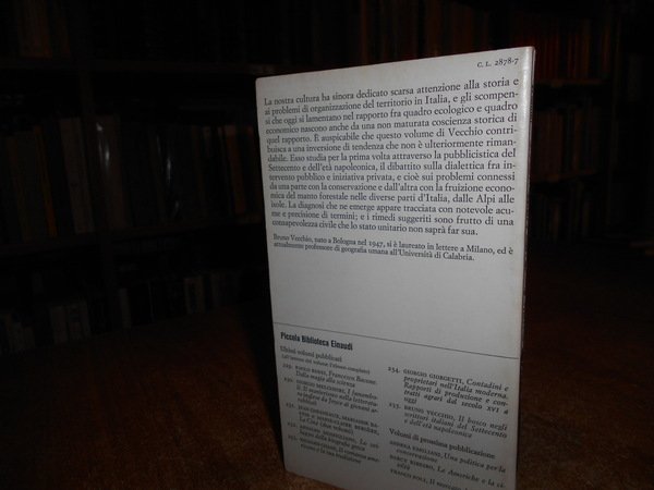 BRUNO VECCHIO. Torino, Einaudi, 1974. Il Bosco negli Scrittori italiani del Settecento e dell' Età Napoleonica. Introduzione di Lucio Gambi. In-16°, cart. edit. xiv, 283 pp. Ben conservato. Neg. mob. 17 einaudi