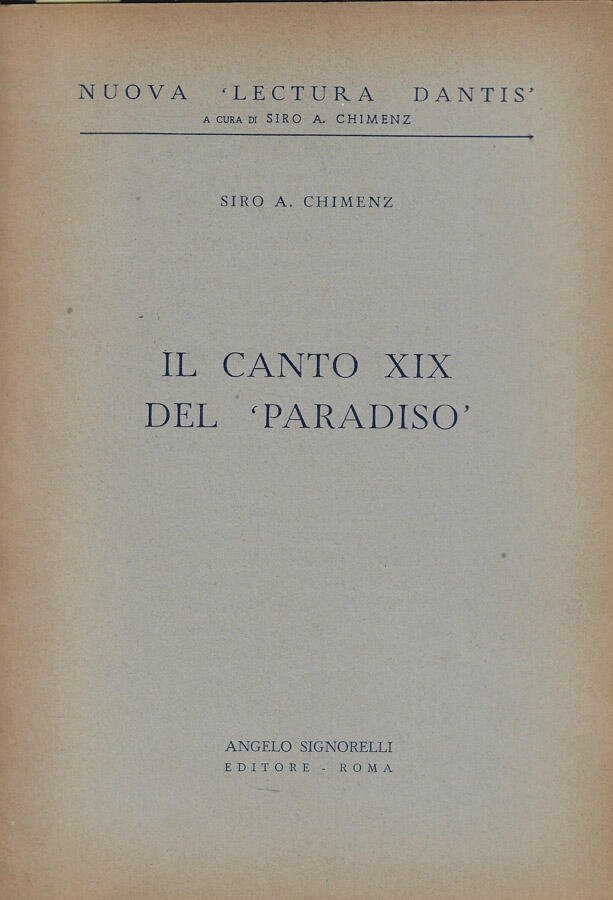 Il canto XIX del Paradiso | Libri antichi e moderni | Siro A. Chimenz