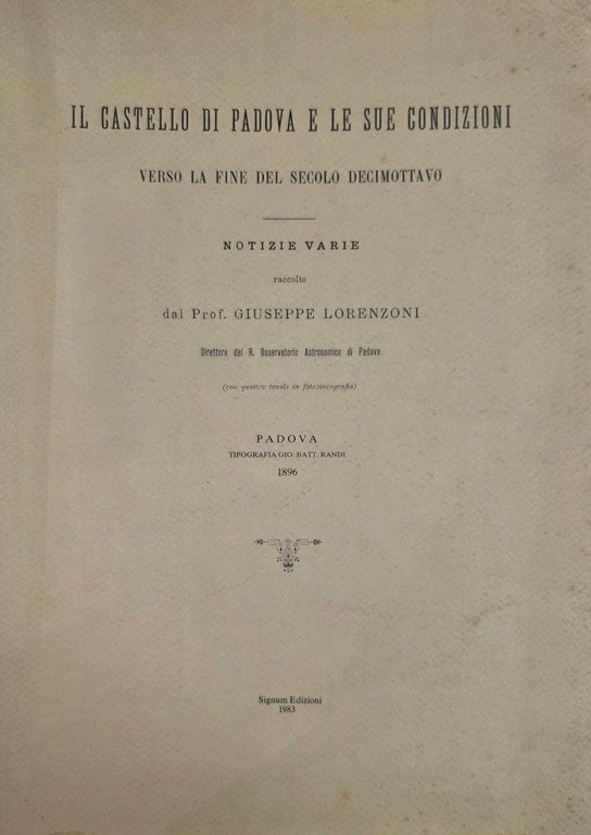IL CASTELLO DI PADOVA E LE SUE CONDIZIONI VERSO LA FINE DEL SECOLO DECIMOTTAVO. NOTIZIE VARIE | Libri antichi e moderni | LORENZONI GIUSEPPE, ,LORENZONI GIUSEPPE