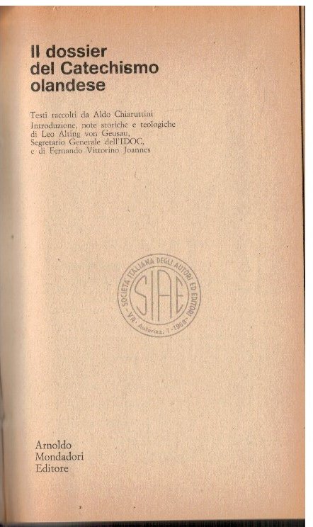 Il Dossier del Catechismo olandese | Libri antichi e moderni |