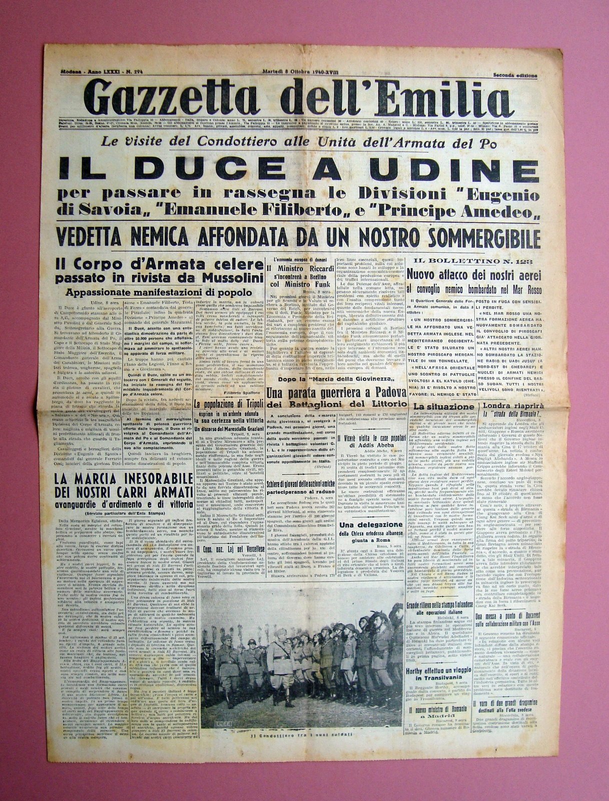 Il Duce a Udine in prima Gazzetta dell'Emilia 8/10/1940 completo
