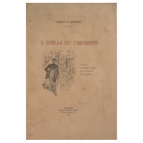 in 8° - pp.XVI + 165 - Brossura editoriale con copertina illustrata - Lievi fioriture. Segni del tempo alla brossura - Saggio sull’origine della camorra attraverso la letteratura, gli usi e i costumi del tempo;<br>Sul duello o dichiaramento analizzandone le diverse fasi evolutive e sulle varie questioni giuridiche.