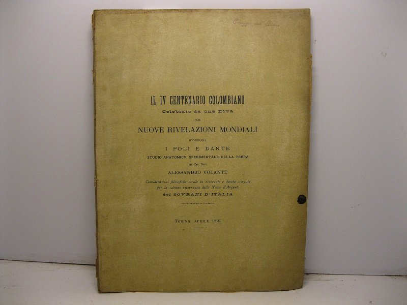 Il IV centenario colombiano celebrato da una Diva con nuove rivelazioni mondiali ovverosia i Poli e Dante. Studio anatomico, sperimentale della terra. Considerazioni filosofiche scritte in riverente e devoto ossequio per la solenne ricorrenza delle Nozze d'Argento dei Sovrani d'Italia | Libri antichi e moderni | Volante Alessandro