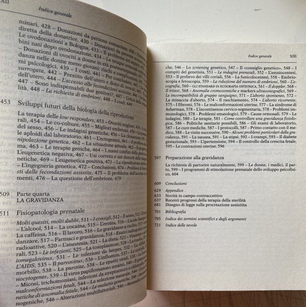 Soggetti: Procreazione assistita, Medicina, Biologia, Nascite, Controllo, Riproduzione, Fisiopatologia, Cause, Sterilità maschile e femminile, Infertilità, Tecniche, Opere generali, Consultazione, Divulgazione scientifica, Guide, Maternità, Genitori, Figli, Vitro, Embriologia, Embrioni, Inseminazione eterologa, Ginecologia, Apparato genitali, Problemi, Patologie, Fisiologia, Apparato riproduttivo, Ovaie, Spermatozoi, Esami, Contraccezione, Aborto, Utero, Ovaio policistico, Obesità, Età avanzata, Ormoni, Fecondazione artificiale, Embrione, Scienza, Etica, Filosofia, Leggi, Regolamenti, Paesi occidentali, Italia, Europa, Spagna, Gran Bretagna, Francia, Inghilterra, Germania, Riproduzione umana, Crescita, Sviluppo, Ostetricia, Pediatria, Mestruazioni, Menopausa, Gravidanza, Concepimento, Procreazione medicalmente assistita, Letteratura, Riferimento, Bestseller, Esperti italiani, PMA, Ciclo, Donne, Diventare madri, Endocrinologia ginecologica, Avere un bambino, Vita, Parto, Fare figli, Genitorialità, Legge 40/2004, Coppie, Matrimonio, Chiesa cattolica, Berlusconi-Ruini, Diritto, Diritti umani, Libertà civili, Consulenza, Vagina, Ipofisi, Ipotalamo, GnRH, Mucosa uterina, Prolattina, Testicoli, Liquido seminale, Efficienza, Amenorrea, Endometrio, Endometriosi, Cure, Terapie, Genetica, Herpes genitale, HIV, Aids, HPV, Counseling, Vasectomia, Progesterone, RU 486, Rapporti sessuali, Sessualità, Frequenza, Temperatura basale, Andrologo, Gameti, Test, Esami, Interventi, Chirurgia, Laparoscopia, ICSI, FIVET, SUZI, GIFT, IAD, Freddo, Banche del seme, Raccolta, Crioconservazione, Ovodonazione, Ovuli, Prestito, Utero, Affitto, Madre surrogata, Rischi, Costi, Eugenetica, Novità, Glossario, Bibliografia, Screening, Doppler, Diabete gestazionale, Influenza, Varicella, Rosolia, Parvovirus, Farmaci, Alcool, Caffeina, Cocaina, Eroina, Nicotina, Toxoplasmosi, Epatite, Virus, Micosi, Trasmissione, Ereditarietà, Anestesia, Dieta Vitamine, Integrazione, Protocolli, Indagini, Visita medica, Consigli, Ricerca, Centri, Bologna, Fibroma uterino, Fibromi, Markers, Ecografia, Tumori, Mammella, Donatrici, Donatori, Libri Vintage Fuori catalogo, Obiezione di coscienza, Amniocentesi, Anestesia, Azoospermia, Cromosomi, Cisti, Corpo luteo, DNA, Estrogeni, GH, Gemelli, Tiroide, Malformazioni, Infezioni, Ogino-Knaus, Nausea, Stimolazione ovarica, Cushing, Kallmann, Down, Sindromi, Asherman, Dubin-Johnson, Klinefelter, Morris, Rotor, Turner, Lesch-Nyhan, Spermiogramma, Taglio cesareo, Collo, Retroversione, Eziologia, Risultati, Congelamento, Estero, Bioetica, Corte Costituzionale, Repubblica Ceca, Est, Centri di PMA, Madre surrogata, Malattie genetiche, Linee guida, Slovenia, Diagnosi genetica pre-impianto, Turismo procreativo, Anomalie cromosomiche, Omosessuali, Periodo fertile, Assisted reproduction, Medicine, Biology, Births, Control, Reproduction, Pathophysiology, Causes, Male and female sterility, Infertility, Techniques, General works, Consultation, Scientific dissemination, Guides, Maternity, Parents, Children, Embryos, Heterologous insemination, Gynecology, Genital system, Problems, Pathologies, Physiology, Reproductive system, Ovaries, Sperm, Tests, Contraception, Abortion, Uterus, Polycystic ovary, Obesity, Advanced age, Hormones, Artificial insemination, Embryo, Science, Ethics, Philosophy, Laws, Regulations, Western countries, Italy, Europe, Spain, Great Britain, France, England, Germany, Human reproduction, Growth, Development, Obstetrics, Pediatrics, Menstruation, Menopause, Pregnancy, Conception, Medically assisted procreation, Literature, Reference, Italian experts, Cycle, Women, Becoming mothers, Gynecological endocrinology, Having a baby, Life, Childbirth, Having children, Parenting, Couples, Marriage, Catholic church, Law, Human rights, Civil Liberties, Consultation, Pituitary, Hypothalamus, Uterine mucosa, Prolactin, Testicles, Seminal fluid, Efficiency, Amenorrhea, Endometrium, Endometriosis, Cures, Therapies, Genetics, Vasectomy, Progesterone, Sexual intercourse, Sexuality, Frequency, Basal temperature, Gametes, Tests, Interventions, Surgery, Laparoscopy, Cold, Sperm banks, Collection, Cryopreservation, Egg donation, Ovules, Loan, Uterus, Rent, Surrogate mother, Risks, Costs, Eugenics, News, Glossary, Bibliography, Gestational Diabetes, Chickenpox, Rubella, Drugs, Alcohol, Caffeine, Cocaine, Heroin, Nicotine, Toxoplasmosis, Hepatitis, Mycosis, Transmission, Inheritance, Anesthesia, Integration, Protocols, Investigations, Medical examination, Advice, Research, Centers, Uterine fibroma, Fibromas, Ultrasound, Tumors, Breast, Donors, Out of print books, Conscientious objection, Amniocentesis, Anesthesia, Cromosomes, Cyst, Corpus luteum, Estrogen, Gemini, Thyroid, Malformations, Infections, Ovarian stimulation, Syndromes, Spermiogram, Cesarean section, Neck, Retroversion, Etiology, Results, Freezing, Foreign, Bioethics, Constitutional Court, Czech Republic, East, Mother surrogacy, Genetic diseases, Guidelines, Slovenia, Pre-implantation genetic diagnosis, Procreative tourism, Chromosomal abnormalities, Homosexuals