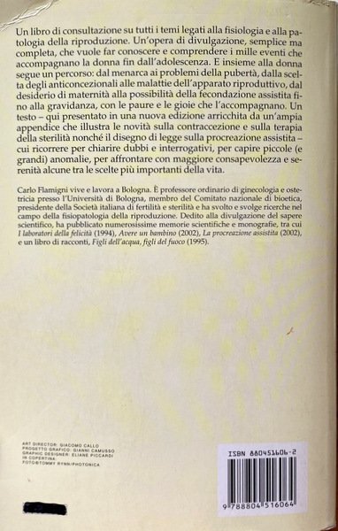 Un libro di consultazione su tutti i temi legati alla fisiologia e alla patologia della riproduzione. Un'opera di divulgazione, semplice ma completa, che vuole far conoscere e comprendere i mille eventi che accompagnano la donna fin dall'adolescenza. E insieme alla donna segue un percorso: dal menarca ai problemi della pubertà, dalla scelta degli anticoncezionali alle malattie dell'apparato riproduttivo, dal desiderio di maternità alla possibilità della fecondazione assistita fino alla gravidanza, con le paure e le gioie che l'accompagnano. Un testo - qui presentato in una nuova edizione arricchita da un'ampia appendice che illustra le novità sulla contraccezione e sulla terapia della sterilità nonché il disegno di legge sulla procreazione assistita - cui ricorrere per chiarire dubbi e interrogativi, per capire piccole (e grandi) anomalie, per affrontare con maggiore consapevolezza e serenità alcune tra le scelte più importanti della vita.
