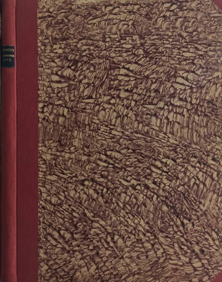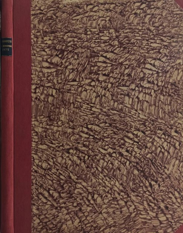 Annata incompleta composta del solo secondo semestre anno 1975 del quotidiano "Il manifesto" rilegata in un unico volume rilegato in elegante simil pelle bordeaux con piatti marmorizzati. Buono lo stato di conservazione dei piatti e del dorso che presentano leggerissime usure da scaffale alle estremità ma strutturalmente non mostrano difetti. Tagli con fioritura e pagine interne ingiallite ai margini ma testo e illustrazioni in b/n sono ottimamente conservati e sono esenti da segni di lettura o sfogliamento. Numero pagine N.N.