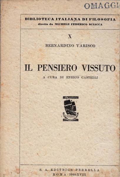 IL PENSIERO VISSUTO | Libri antichi e moderni | Varisco Bernardino