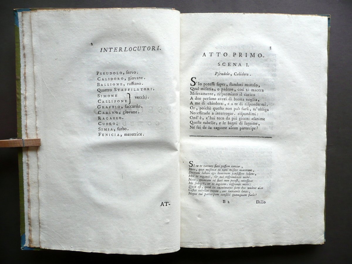 Il Pseudolo Commedia di M. Accio Plauto Idilli Teocrito e Mosco Firenze 1765 | Libri antichi e moderni |