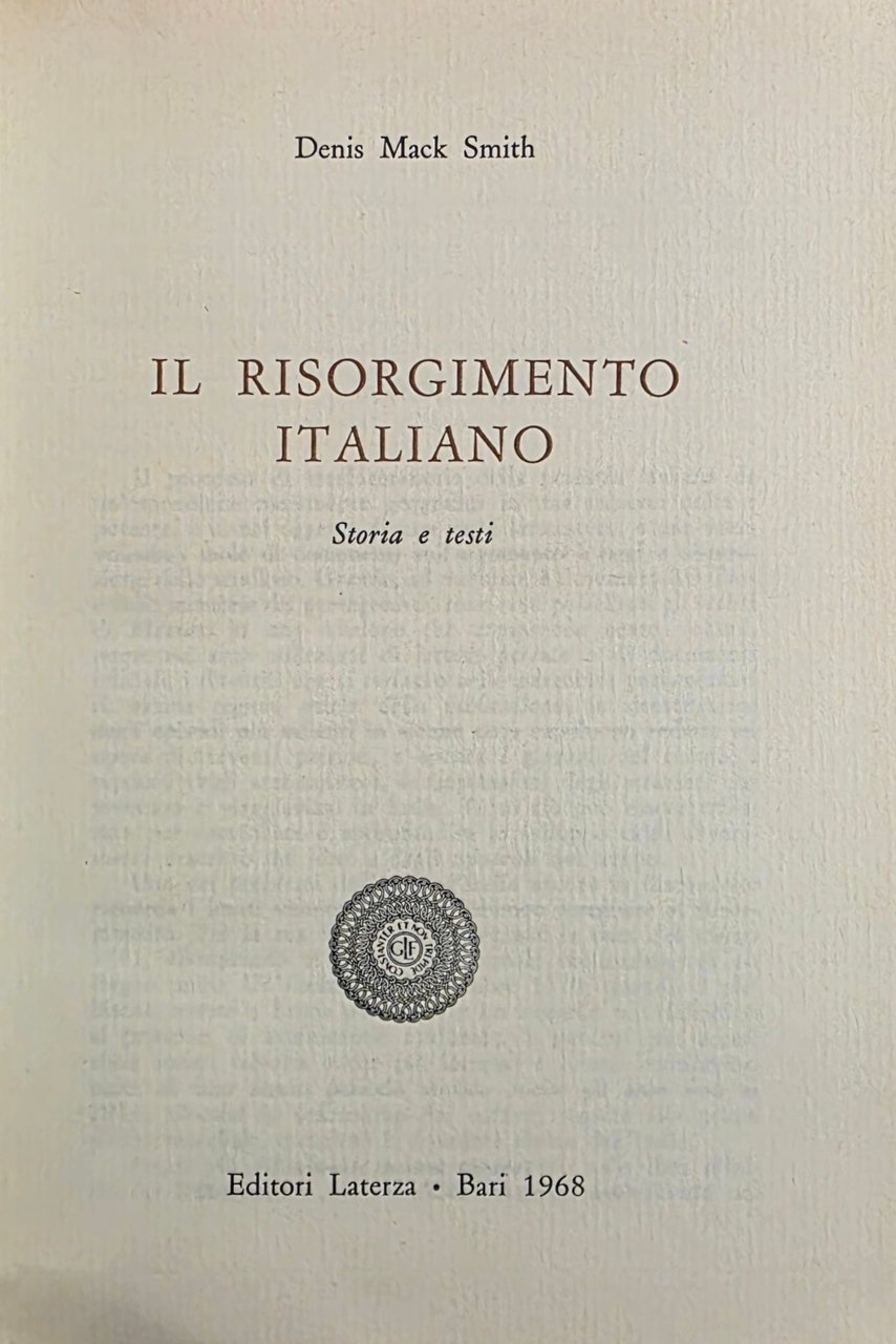 IL RISORGIMENTO ITALIANO. STORIA E TESTI | Libri antichi e moderni | MACK SMITH DENIS, ,MACK SMITH DENIS