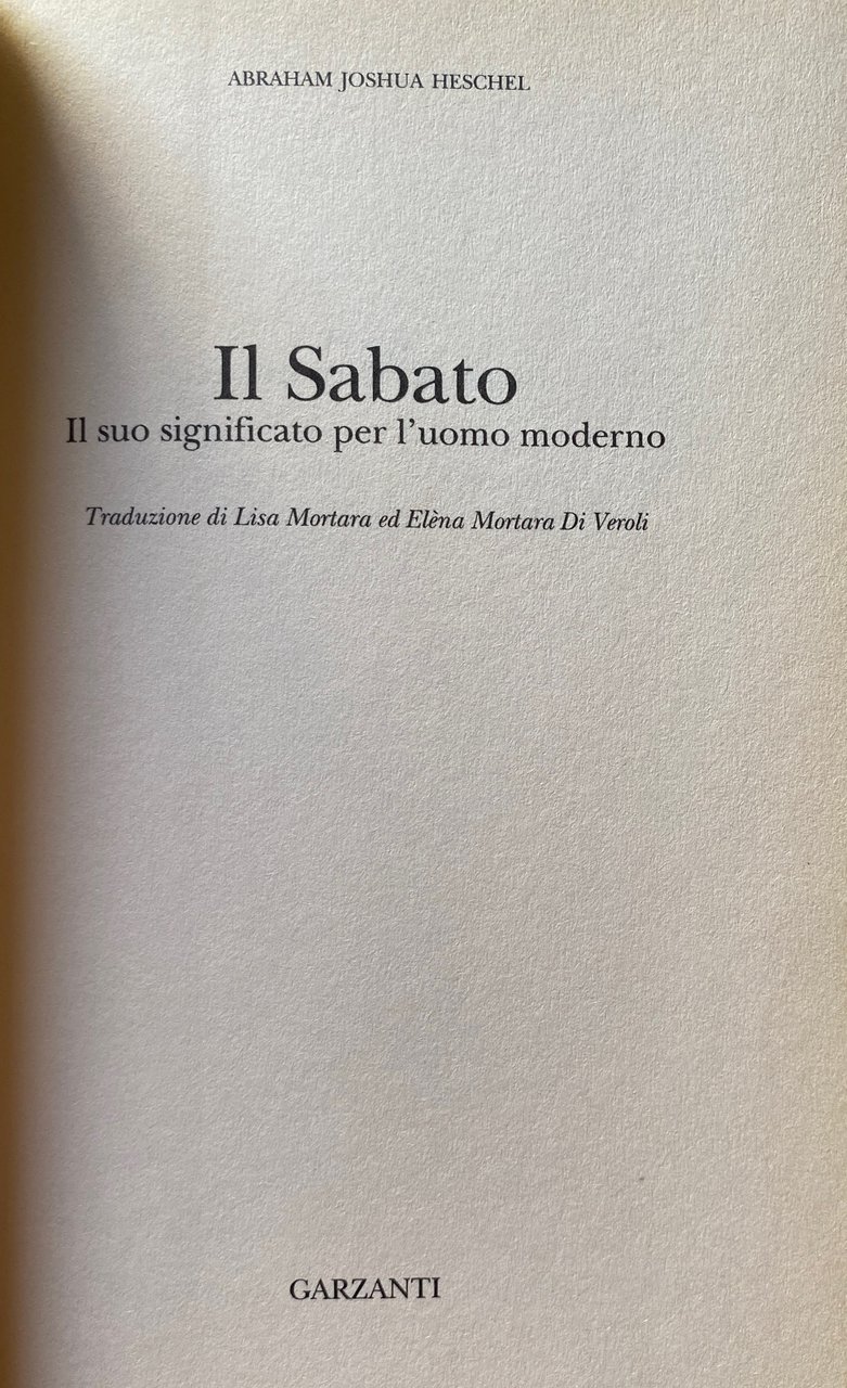 IL SABATO. IL SUO SIGNIFICATO PER L'UOMO MODERNO | Libri antichi e moderni | Abraham Joshua Heschel, Lisa Mortara, Elèna Mortara Di Veroli