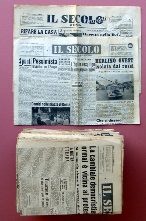 Quotidiani, Il Secolo Quotidiano per gli Italiani Anno I Numeri dal 2 del 17 maggio 1952 al numero 185 del 17 dicembre 1952 annata quasi completa mancano i numeri 169-151-138-137-136-131-102 presenti in pi√π N 58 e 31