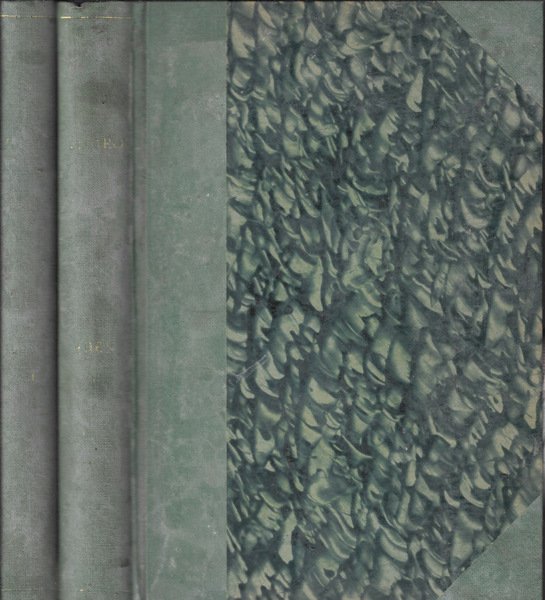 Annata completa in due volumi della rivista bimestrale della civiltà italiana diretta da Vincenzo Cappelletti, composta dai numeri 1/2-3, rispettivamente di febbraio/aprile- giugno al vol. I e dai numeri 4/5-6 rispettivamente di agorto/ottobre-dicembre al vol. II. Mezza legatura con angoli in tela verde e piatti marmorizzati, non coeva, con titoli non più leggibili al dorso, scolorita e segnata dall'umidità . Pagine ingiallite, con testo a due colonne, ampio margine ed arricchite da alcune tavole fuori testo, in carta lucida. Numero complessivo di pagine 653 con numerazione successiva (348-305).