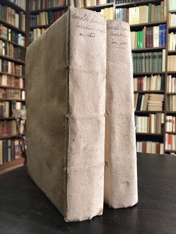 3 volumi in 2 tomi in-4° (cm. 24,5), legature strettamente coeve in cartonato d'attesa con titolo ms. al dorso; pp. XXXII 536, IV 452, VIII 171 in ottimo stato e in barbe, lievi e sporadiche fioriture. «Accedunt in hac novissima editione [.] quaestiones iuris selectae, et praemittitur ex Edizione Veneta Jacobi Gothofredi Historia & Bibliotheca Juris Civilis Romani». Cfr. Sapori 3180. Ottimo esemplare. (NQ5)