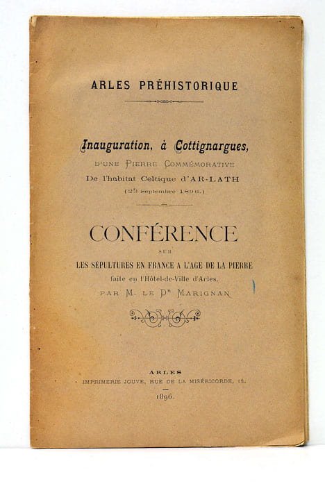 Inauguration, à Cottignargues, d'une pierre commémorative de l'habitat Celtique d'AR-LATH (23 Septembre 1896). Conférence sur les sepultures en France à l'age de pierre faite à l'Hôtel-de-Ville d'Arles. | Libri antichi e moderni | Marignan (M. Le Dr.).