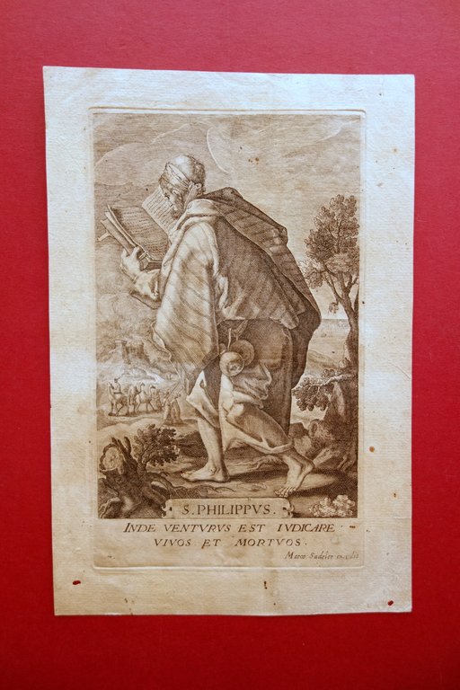 Incisione San Filippo Apostolo Marco Sadeler Fine '500 Primo '600 Religione | Libri antichi e moderni |