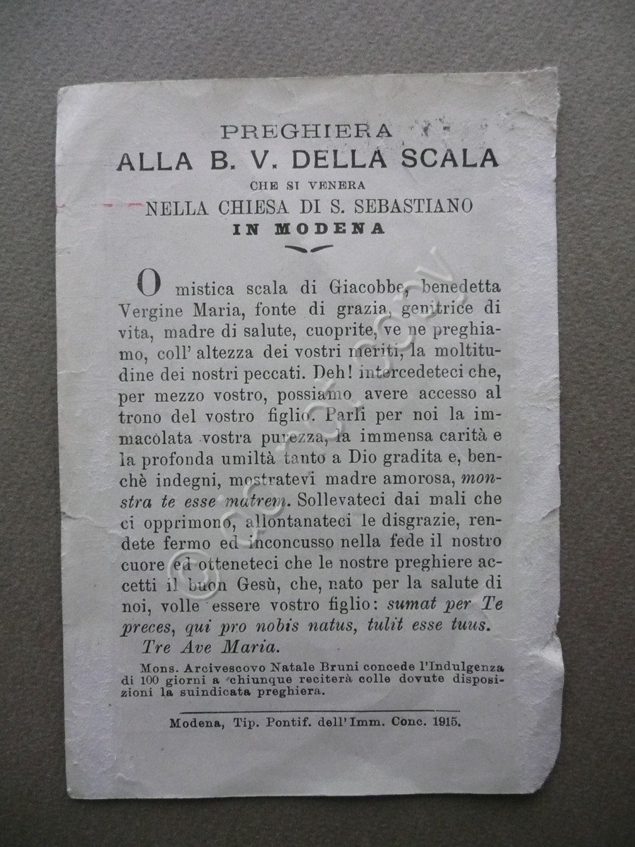 Incisione Vera Effigie di Maria Vergine della Scala S. Sebastiano di Modena '800 | Libri antichi e moderni |
