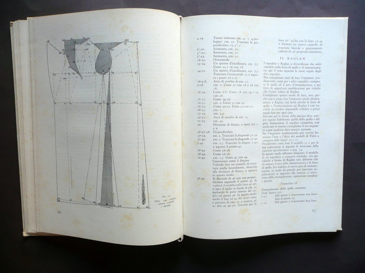 Giuseppe Peterlongo, Indumenti femminili Manuale teorico pratico per il taglio degli indumenti femminili sistema a misure dirette - Taglio della biancheria - il corredino del bambino cucito a mano e cucito a macchina Tumminelli & C. Editori, Roma - Milano, anni '30 '40 del Novecento circa, pp. 204 con 169 fig. in b/n nel t. e fuori t. (qualcuna con dettagli a colori), e con due tabelle ripiegate fuori t.; tutto cartonato ed. con titolo al dorso. Condizioni di conservazione: Esemplare ben conservato con leggere tracce d'uso e alcune piccole lievi bruniture; coperta con minimi accenni di sporco, poche minime / minuscole abrasioni agli angoli dei piatti e alle cuffie. Bella e dettagliata pubblicazione d'epoca per il taglio degli indumenti femminili, corredata da numerose figure esplicative (vedi foto). Esemplare raro. SETT139.L13783 N