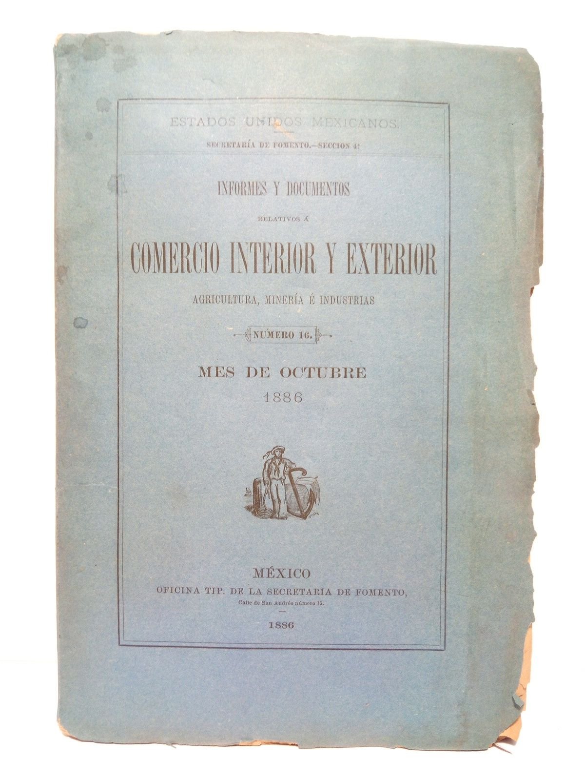 Informes y documentos relativos a comercio interior y exterior, agricultura, minería e industrias. (Número 16, mes de octubre, 1886) | Libri antichi e moderni | Estados Unidos Mexicanos. Secretaria De Fomento. Seccion 4ª