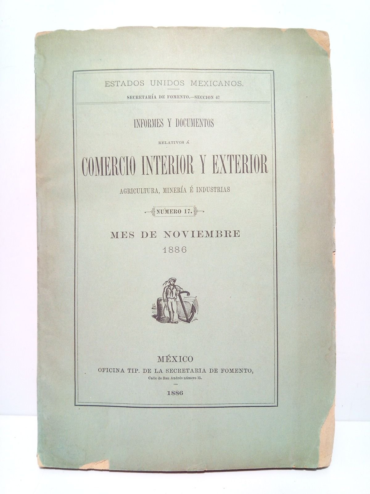 Informes y documentos relativos a comercio interior y exterior, agricultura, minería e industrias. (Número 17, mes de noviembre, 1886) | Libri antichi e moderni | Estados Unidos Mexicanos. Secretaria De Fomento. Seccion 4ª.
