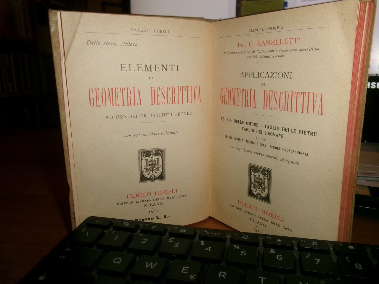 Ing. Prof. RANELLETTI. Applicazioni di GEOMETRIA DESCRITTIVA... Hoepli, 1914 | Libri antichi e moderni |