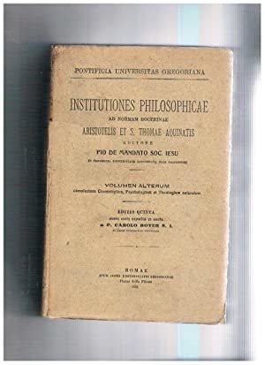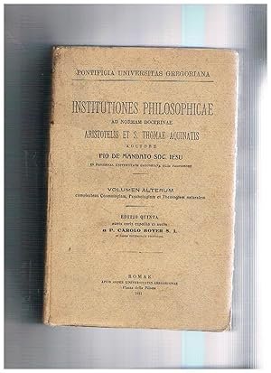 Institutiones Philosophicae ad Normam Doctrinae Aristotelis et S. Thomae Aquinatis – Auctore Pio de Mandato soc. Iesu in Pontificia Universitate Gregoriana Olim Professore – Volumen Alterum complectens Cosmologiam, Psychologiam et Theologiam naturale | Libri antichi e moderni | Pio De Mandato Soc. Iesu