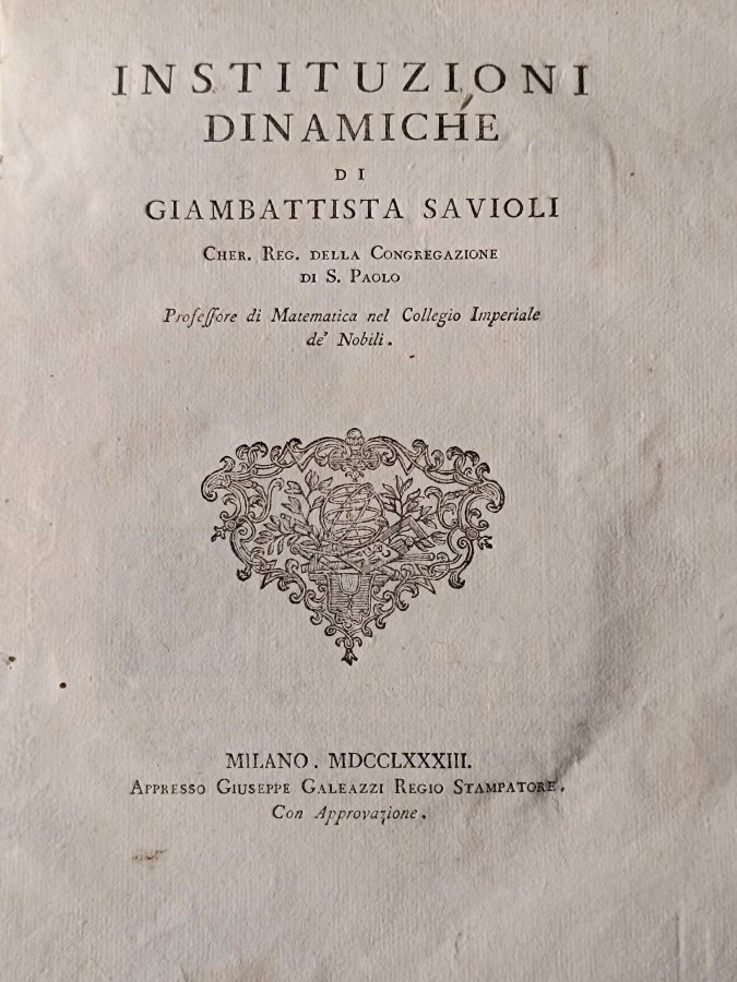 Instituzioni dinamiche. | Libri antichi e moderni | Savioli Giambattista.