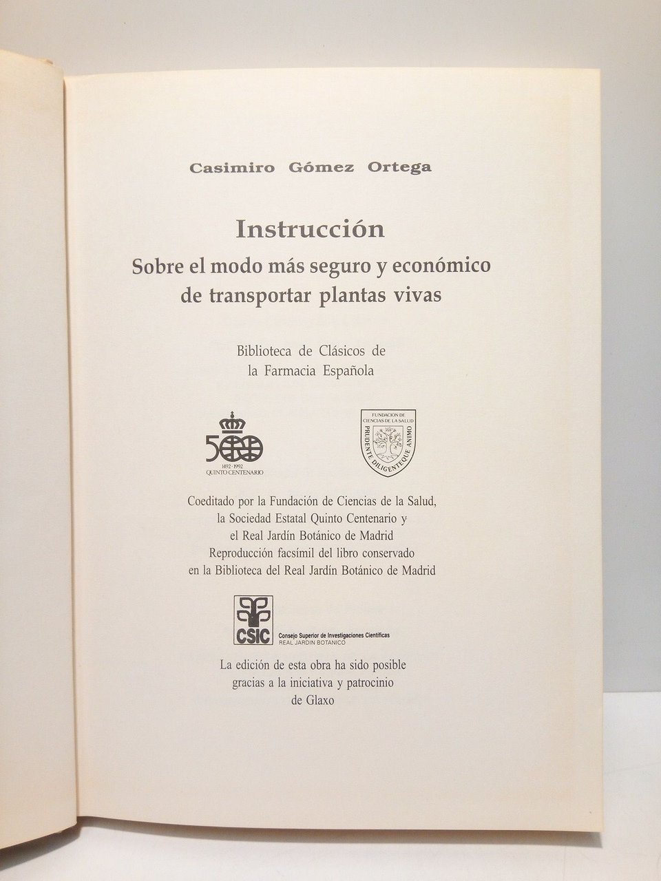 Instrucción sobre el modo mmás seguro y económico de transportar las plantas vivas por mar y tierra á los países mas distantes. Ilustrada con láminas. Añádese el método de desecar las plantas para formar herbarios / Dispuesta de Orden del Rey, por el Dr. Casimiro Gómez Ortega, Primer Catedrático del Real Jardín Botánico y de la Reales Academias Médica, de la Historia, de la de Ciencias de Paris y de la Real Sociedad de Londres. [PRESENTACIÓN DEL FACSIMIL por el Dr. Francisco Javier Puerto Sarmiento]