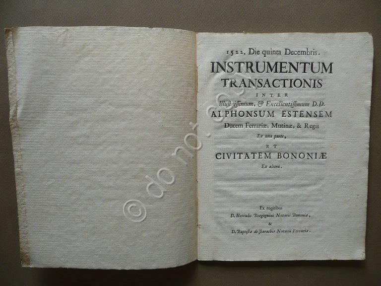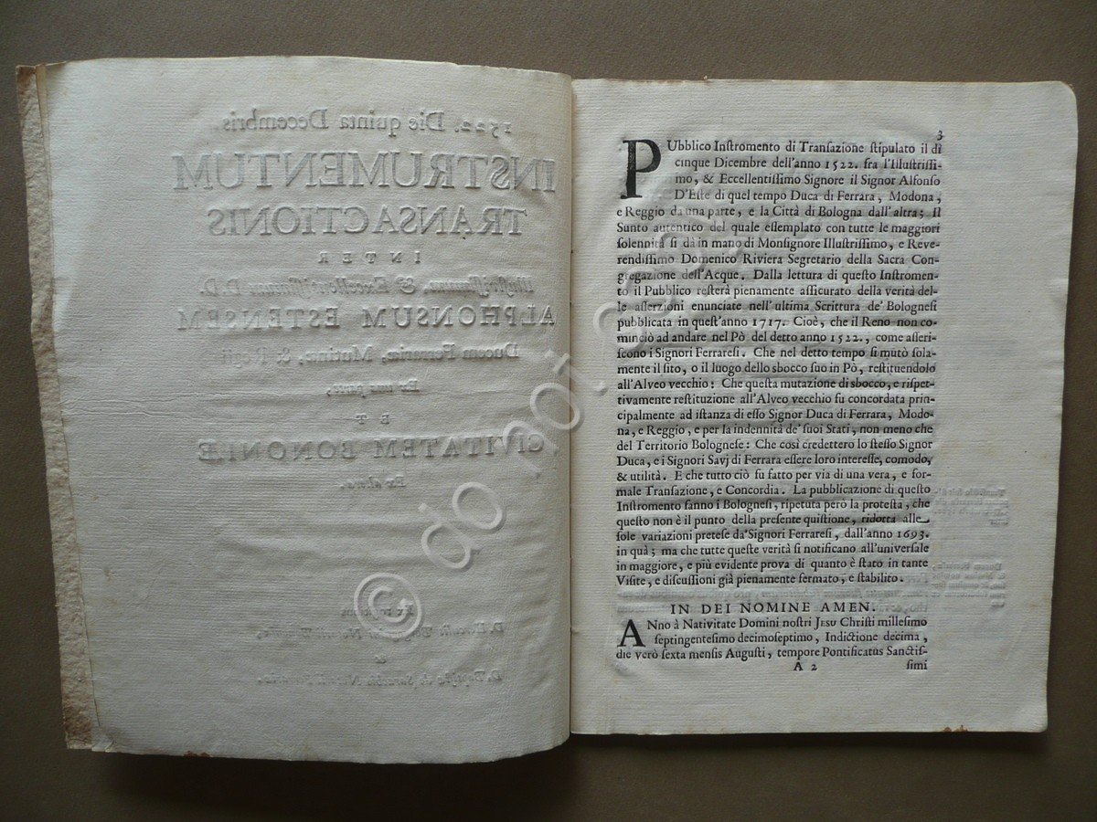 Instrumentum Transactionis Alphonsus Estensem Ducem Mutinae Bononiae 1717 Reno | Libri antichi e moderni |
