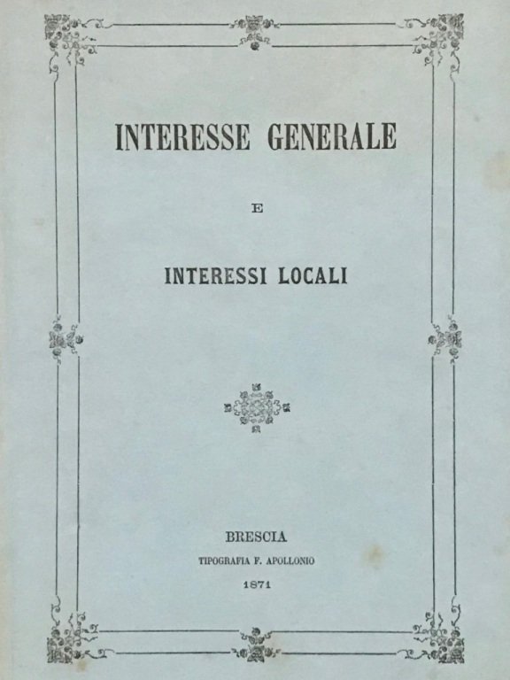 Interesse generale e interessi locali. | Libri antichi e moderni | [Tegas Luigi].
