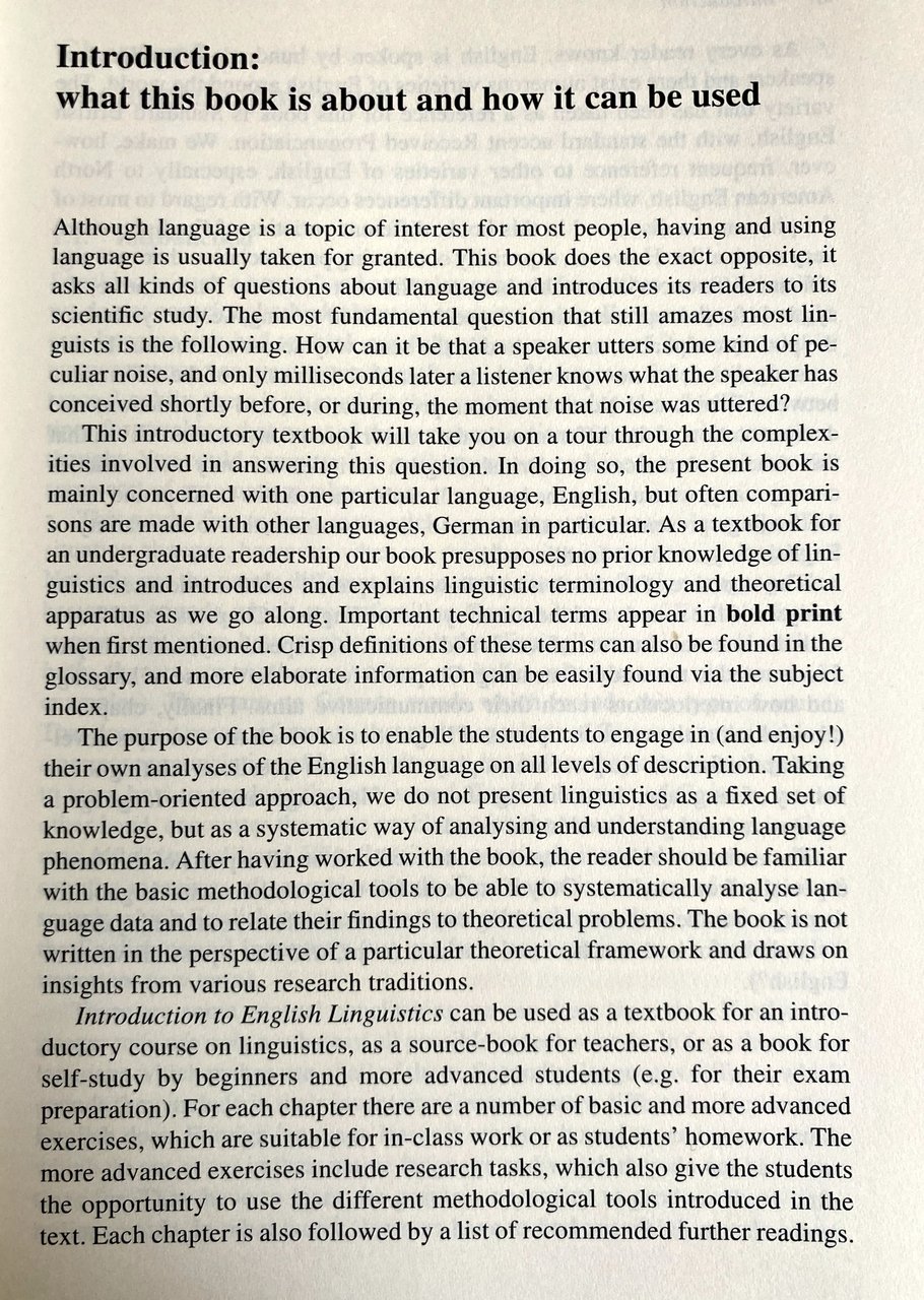 This successful textbook introduces beginning university students of English to the study of English linguistics, with a strong focus on linguistic analysis and argumentation.