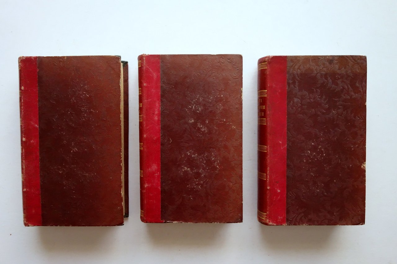 Ioannis Devoti, Ioannis Devoti Dei et apostolicae sedis gratia Episcopi alim Ananiensis dein Archiepiscopi Carthaginensis Institutionum Canonicarum libri IV editio secunda neapolitana - 4 tomi rilegati in 3 volumi opera completa Ex Typographia Simoniana, Napoli 1852; cm 17x10; pp. [6]-X-432-[2] (tomo primo); CXLII-[2] (Additamenta eorum quae auctoritate Summorum Pontificum [.] al tomo primo); pp. 468 (tomo secondo); LXII (Additamenta eorum quae auctoritate Summorum Pontificum [.] al tomo secondo); pp. 240-[2] (tomo terzo); pp. 300 (tomo quarto); legatura d'epoca in mezza pelle con titolo impresso in oro al dorso, piatti telati. Opera completa in quattro tomi rilegati in tre volumi (tomo terzo e quarto rilegati insieme). Alla prima bianca di ciascun volume vecchio timbro di biblioteca, volumi regolarmente annullati e scaricati. Condizioni di conservazione Buone condizioni con tracce d'uso; coperte con alcune minime / piccole leggere abrasioni. Interni buoni con leggere bruniture; pagine 225-300 del tomo quarto con piccola stropicciatura al margine destro. Opera completa in 4 tomi rilegati in 3 volumi (i tomi 3 e 4 sono rilegati insieme). SETT231.L24629 N