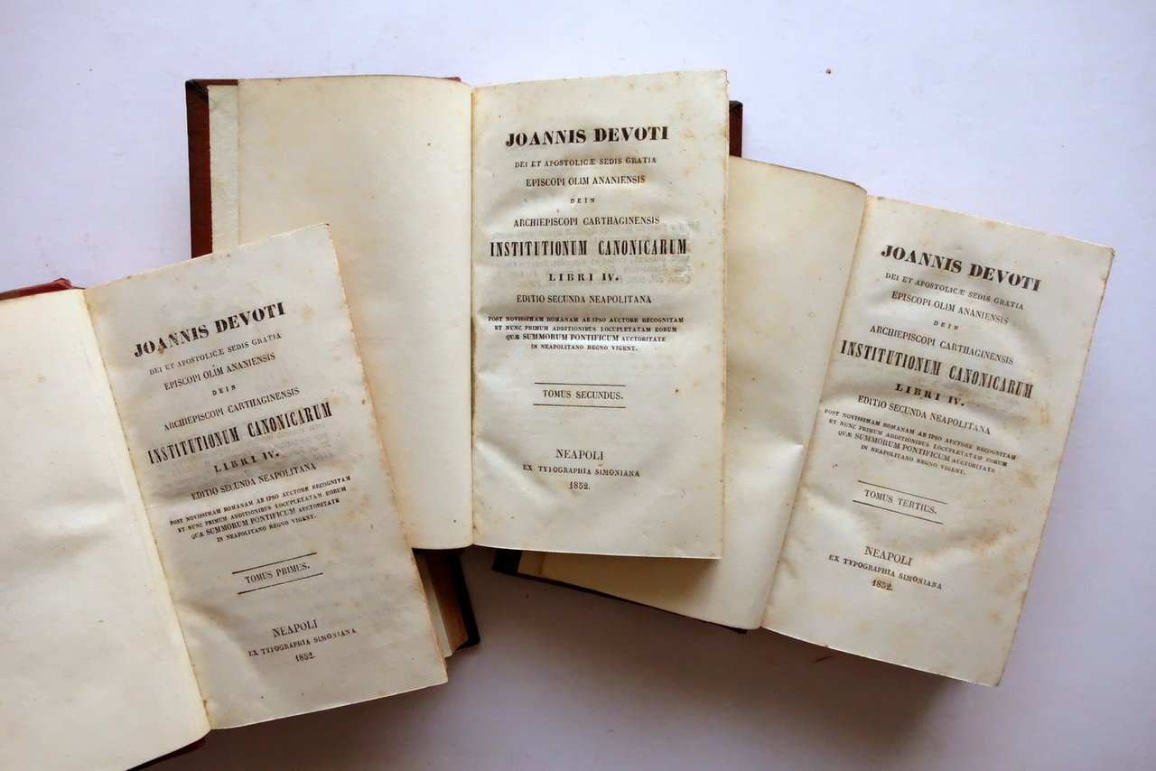 Ioannis Devoti Institutionum Canonicarum Libri IV Simoniana Napoli 1852 4 Tomi
