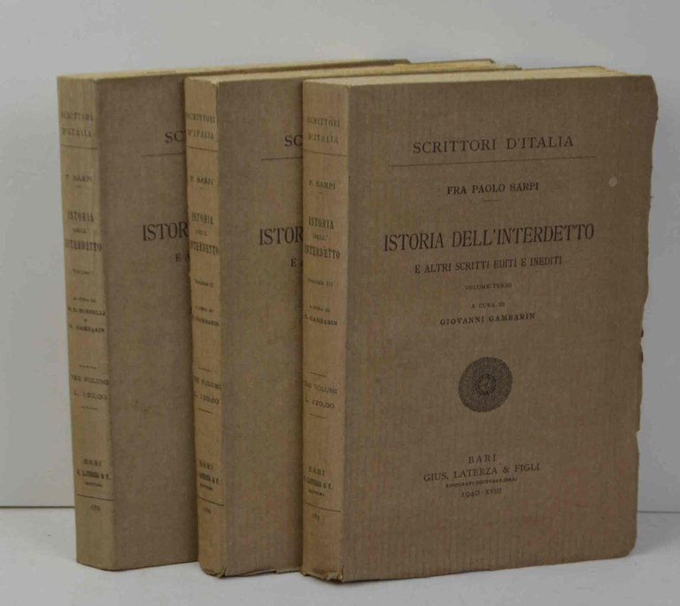 Istoria dell'interdetto e altri scritti editi ed inediti. A cura di M. D. Busnelli e G. Gambarin. Volume primo. | Libri antichi e moderni | SARPI PAOLO.