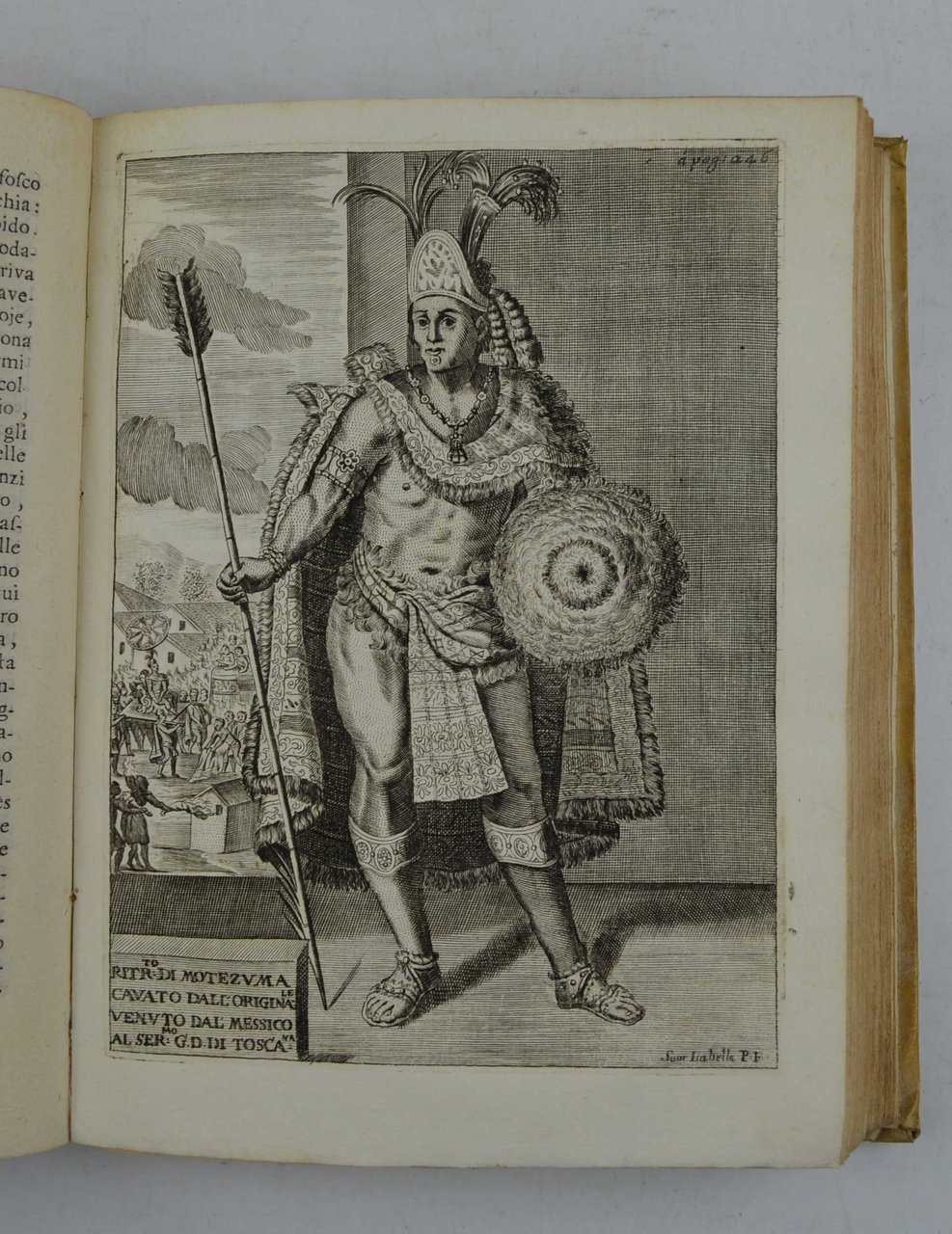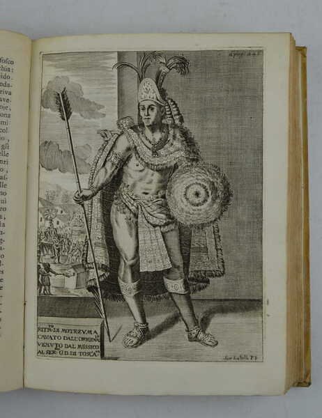 Cm. 22,5, pp. (16) 624. Con 8 tavole incise in rame f.t. tra cui antiporta con il ritratto dell'autore, due ritratti (Cortes e Montezuma) e 5 tavole con scene storiche ed etnografiche. Legatura strettamente coeva in piena pergamena rigida. Esemplare in ottimo stato di conservazione. Bell'edizione di questa opera storica interessante e di grande fascino.