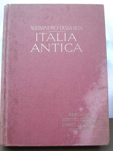 in-8° gr., pp. 509 con 458 ill. n.t. Leg. in tutta tela con tit. in oro al piatto ant. e al dorso. Ex libris all'interno. Collezione di Monografie illustrate. Della serie della Storia della civiltà, la presente opera riguarda l'Italia antica.