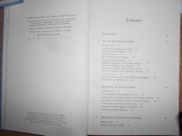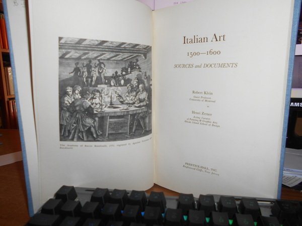 ROBERT KLEIN - HENRI ZERNER. New Jersey, Prentice Hall., 1966. ITALIAN ART 1500-1600 Sources and Documents. In-8°, tela azzurra con titolo in oro entro tassello al dorso. xviii, 195 pp. con alcune illustrazioni nel testo. In ottimo stato di conservazione. Uff. B - II - 2