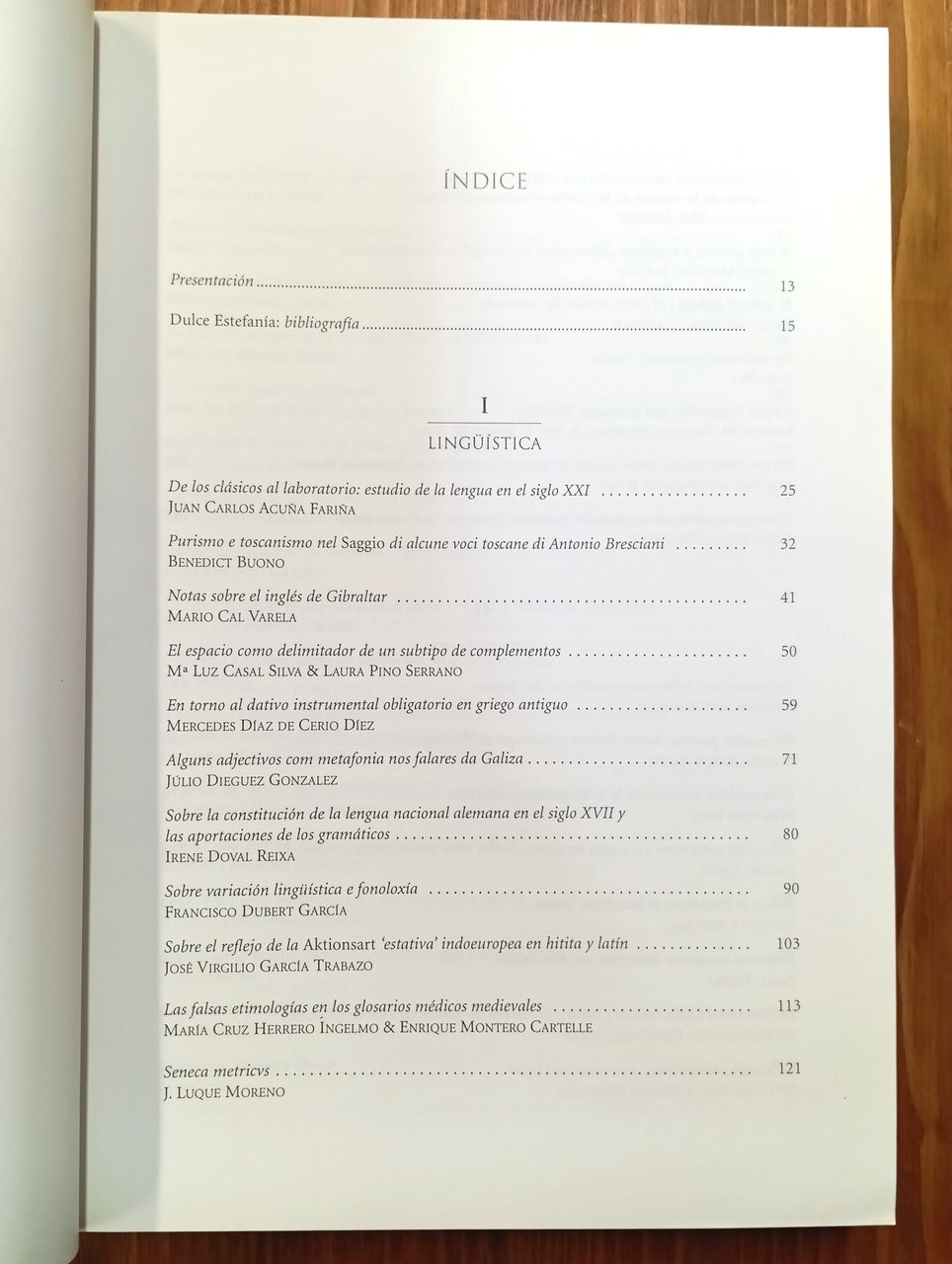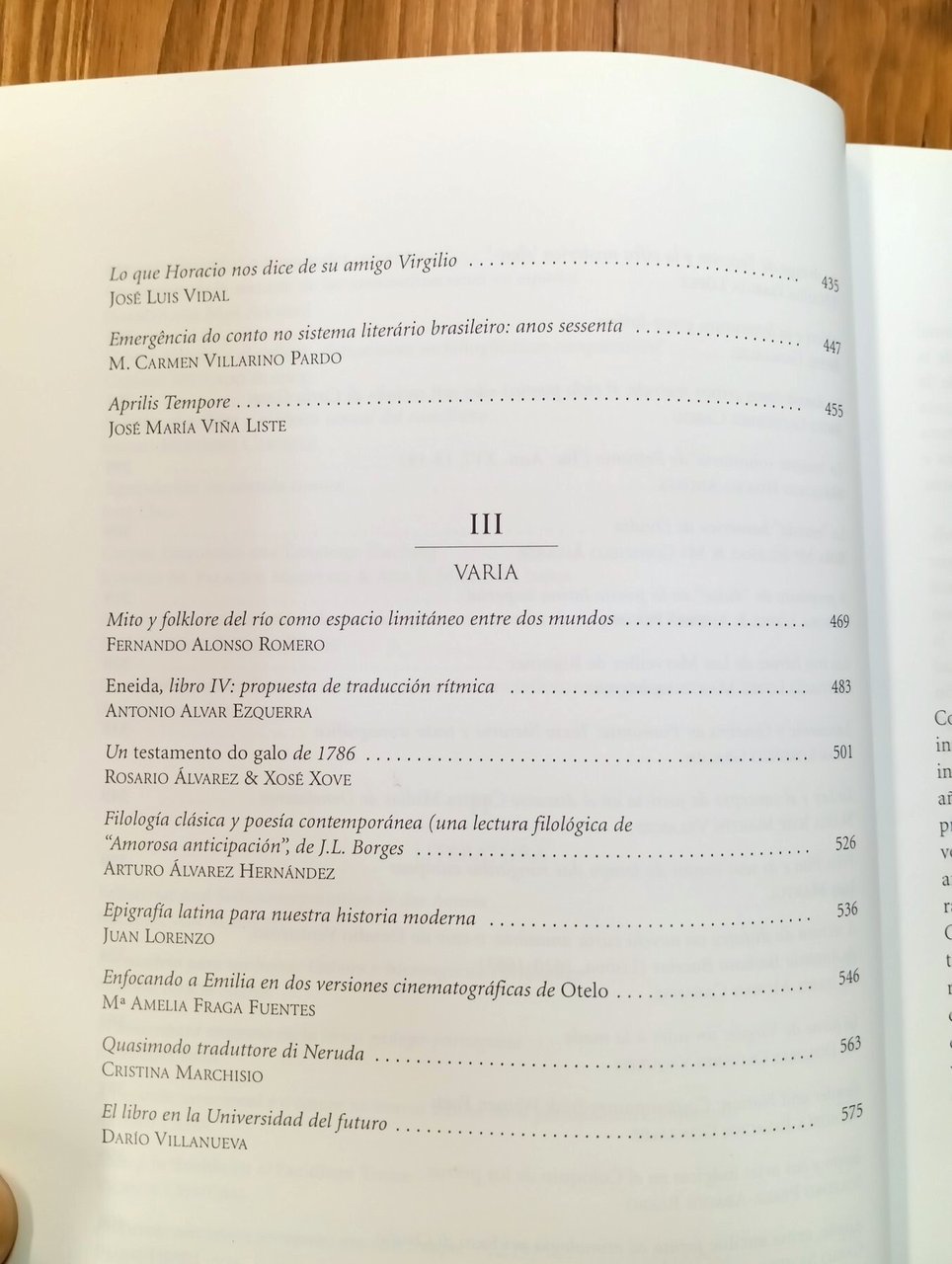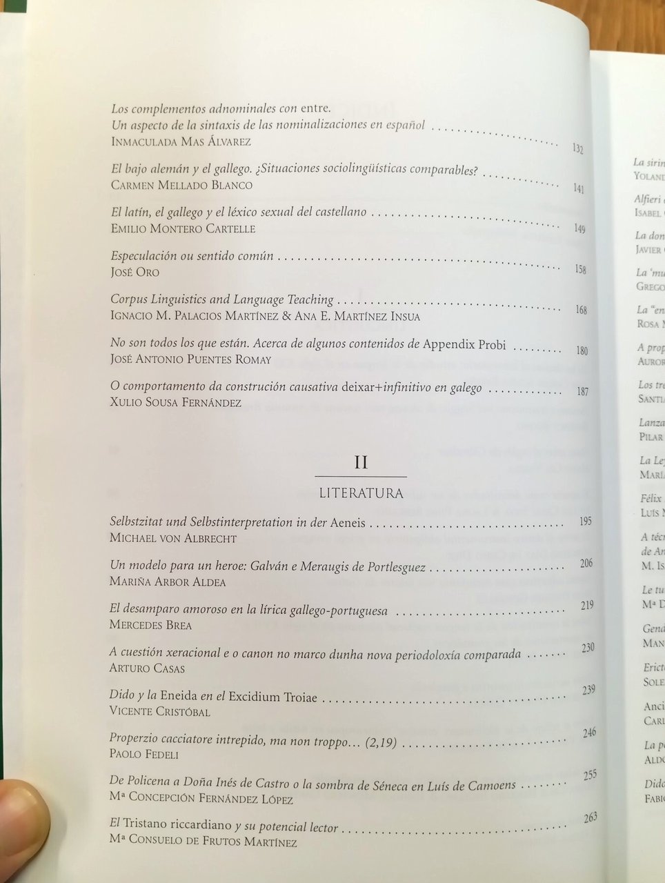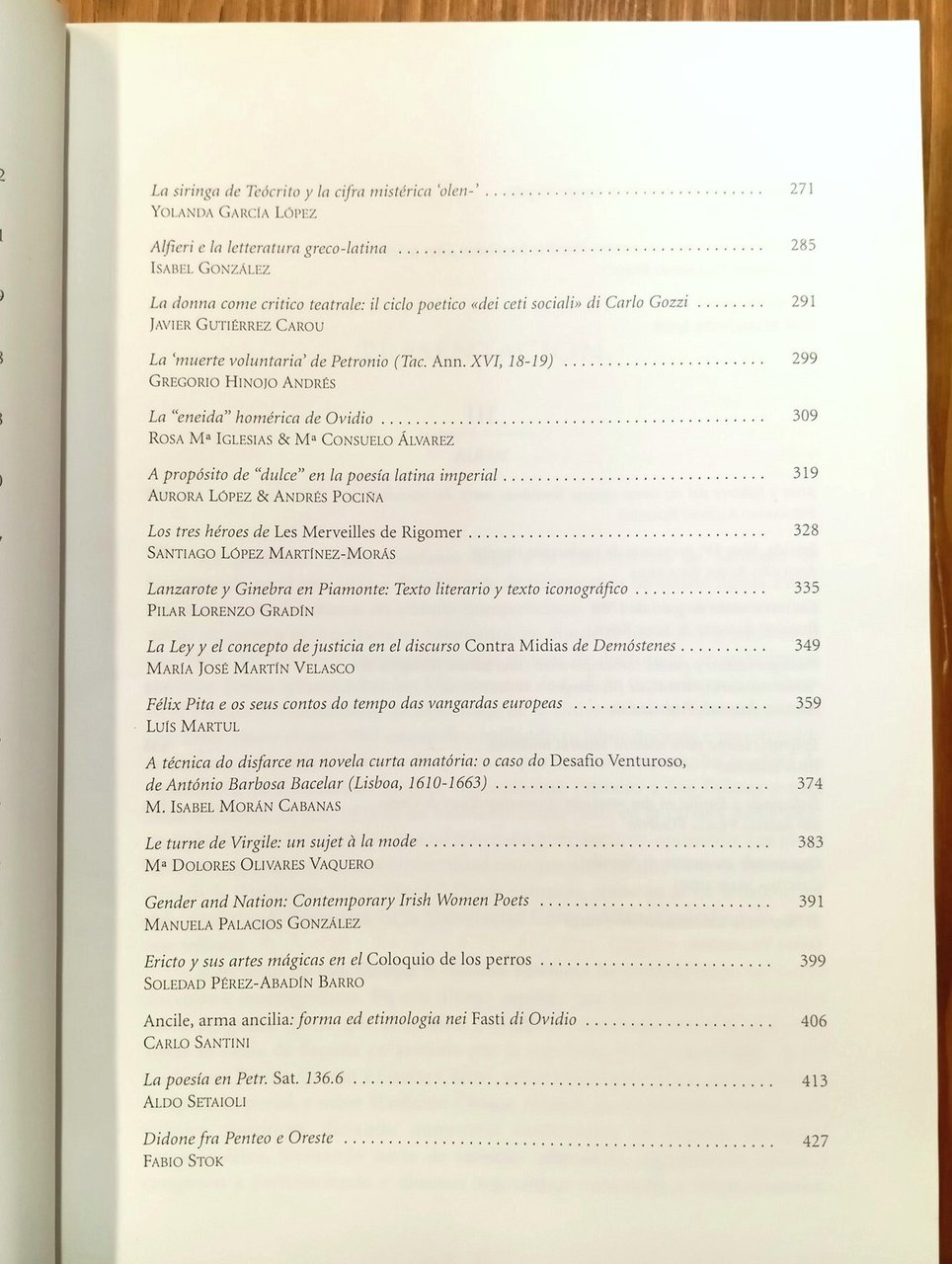 "Facultade de Filoloxia - Departemento de Latin e Grego" - Brossura editoriale con bandelle, 589 pagine. Accluso foglio volante di errata corrige. Contributi in lingua originale, prevalentemente in spagnolo castigliano o galiziano. Indice consultabile nelle nostre immagini. Copia eccellente, con tutta probabilità mai aperta.