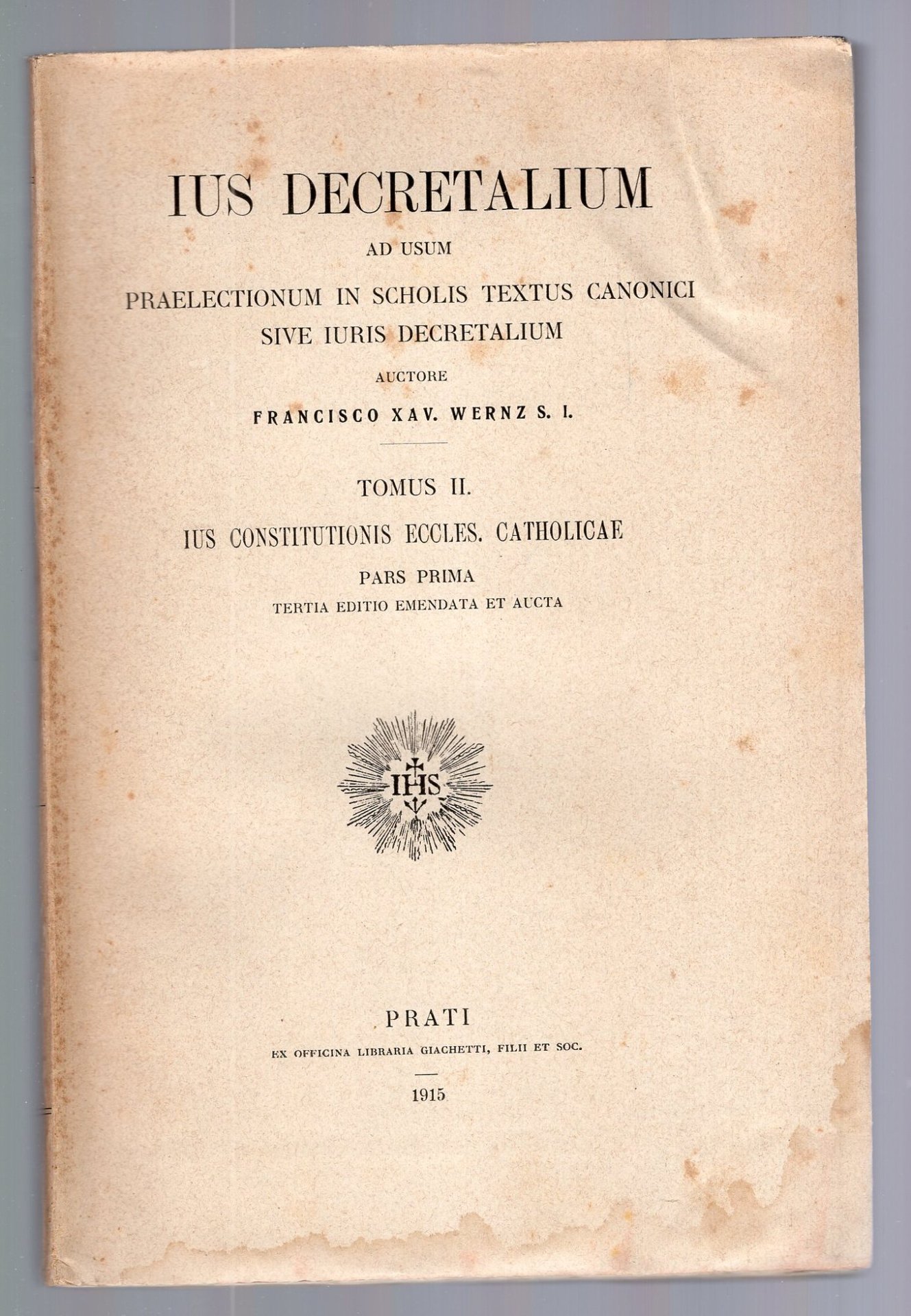 Ius decretalium ad usum praelectionum in scholis textus canonici sive iuris decretalium Tomus II : Ius constitutionis Eccle. Catholicae Pars Prima | Libri antichi e moderni | Francisco Xav. Wernz S.I., ,Francisco Xav. Wernz S.I.