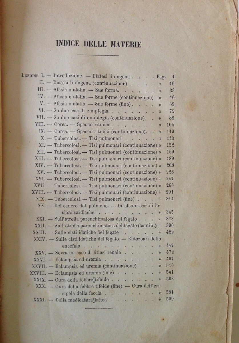 JACCOUD S., NUOVE LEZIONI DI CLINICA MEDICA FATTE ALL'OSPEDALE LARIBOISIERE NAPOLI, MARGHIERI, 1876, in 8°, pp. 629 con 10 tavv. f.t., modesta m. tela epoca, piatti marmor. Condizioni di conservazione Esemplare in buono stato con leggere tracce d'uso, piccole abrasioni alla coperta, mancanze e strappetti ai margini e agli angoli, in particolare al piatto anteriore, dorso sbiadito, interni buoni con qualche brunitura. MM0428/B2-356