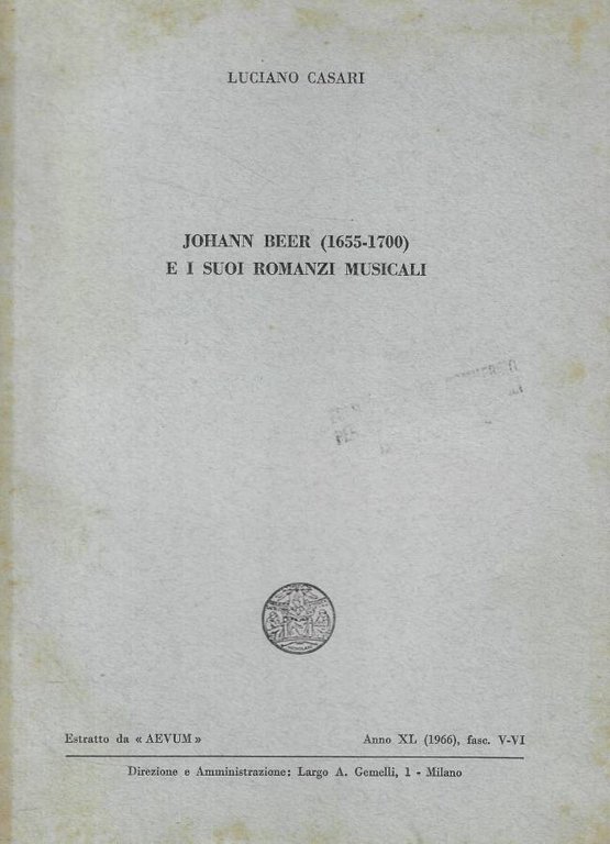 Johann Beer (1655-1700) e i suoi romanzi musicali | Libri antichi e moderni | Luciano Casari