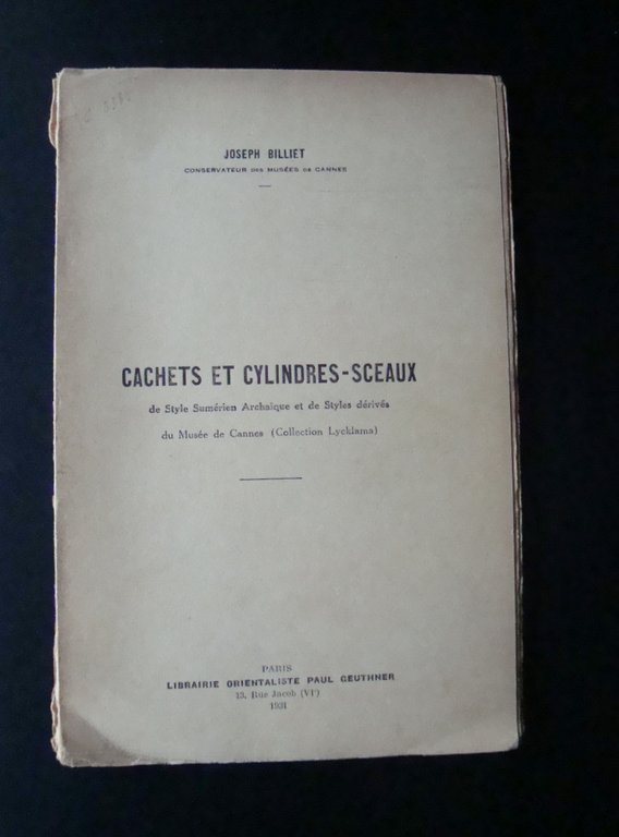 Joseph Billiet Cachets et Cylindres-Sceaux Sumeri 1931 Geuthner Museo di Cannes | Libri antichi e moderni |