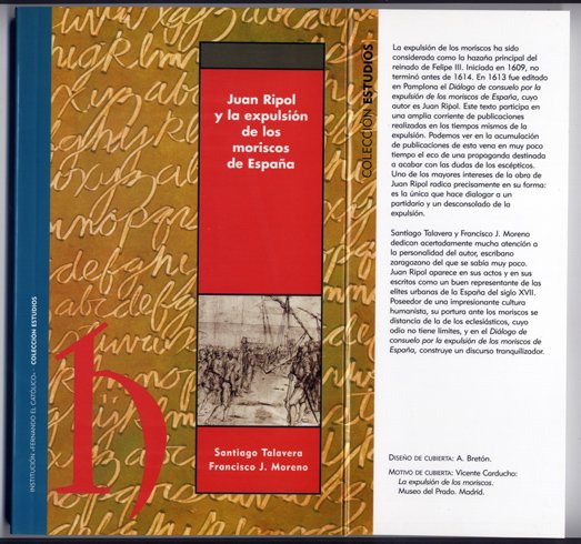 Juan Ripol. Dialogo de Consuelo por la Expulsión de los Moriscos de España. [Pamplona, Nicolas de Assiayn, 1613]. Edición y estudio introductorio: "Juan Ripol y la expulsión de los moriscos de España", de . Prólogo de Bernard Vincent.