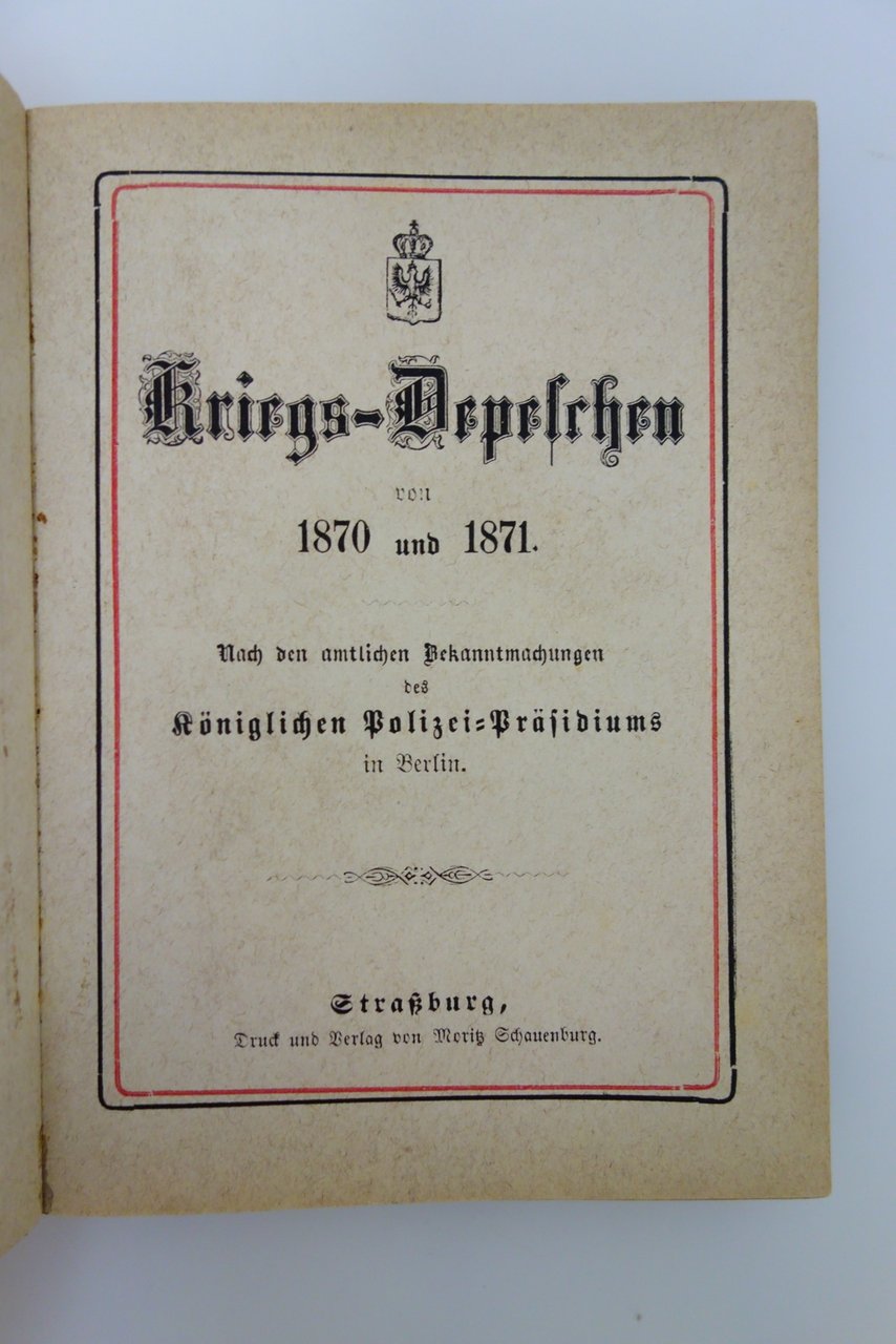 KRIEGS-DEPESCHEN 1870-1871 KONIGLICHEN POLIZEI-PRASIDIUMS BERLIN STRASBURG 1875 | Libri antichi e moderni |